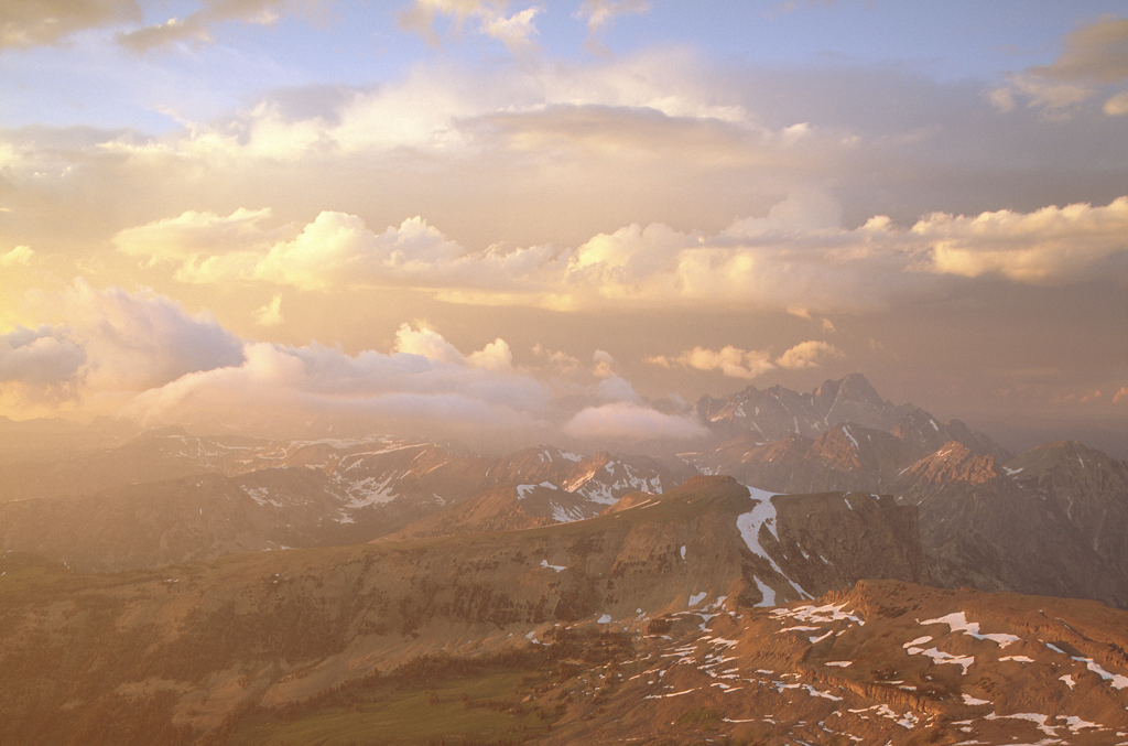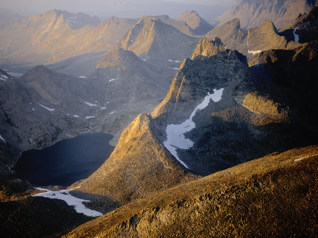 The Wind Rivers were conceived during the Laramide Orogeny, and were lifted to their current elevation by ten million years ago. More than most American ranges, they were sculpted into this Valhalla landscape by moving ice during the Pleistocene. I found a little dab of glacier stuck to the side of Gannet Peak, not quite fourteen thousand feet above sea level. There were goblet-shaped cirques and trout-laden tarns. The cliffs were granite, glowing like gold. I photographed nonstop until I thought smoke would pour out of my cameras.