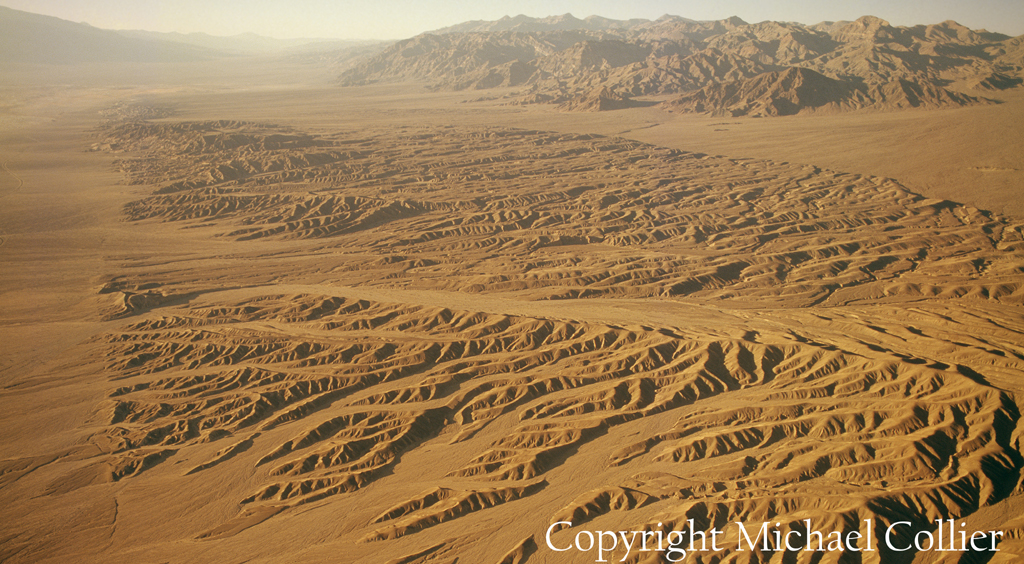 I stood there, mostly mute, hands in my pockets. The stream of questions continued and all I could say was, “Well, get in and I’ll show you.” Vikram suddenly looked nervous. “Oh, no; that wouldn’t be possible.” Vikram the world traveler was scared of little old airplanes. After a string of ineffective protests, he eventually relented. Off we went, over the Devil’s Golf Course, past Bad Water and the Copper Canyon Turtleback. We marveled at the Split Cinder Cone and were reassured to reach the Confidence Hills. Soon Vikram had thrown his initial fears out the window and beamed as we overflew the bajada at Tucki Mountain and Cretaceous thrust faults below the Racetrack. We returned to Furnace Creek. Two hours had passed in what seemed like two minutes. Vikram, freed from the ground, knew that he had to shoot this film from the air.
